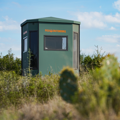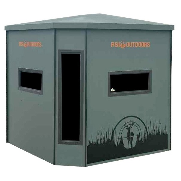 Step inside this long-lasting hunting blind with 360° view of your surroundings, making this an absolute must-have for any hunter. The 360° Hunting Blind is built from durable aluminum composite material, ensuring exceptional strength and durability. The floor design eliminates exposed plywood, enhancing the blind's waterproof integrity. Material included in RSIO blinds will not rust or rot, allowing them to withstand hard use and remain in the field year-round without undue wear. Best of all, they are 100% American-made in south-central Pennsylvania. This construction not only withstands the elements but also effectively deters animals, as they cannot chew through or burrow into the material. Acoustical foam covers the interior walls and will provide next-level sound control while providing insulation during the cooler seasons. A convenient built-in shelf with a gun holder will help organize and support your gear and supplies. In addition to mounted LED ceiling lights. Whisper-quiet hinges on all glass windows will keep your blind dry, scent in, bugs out, and access for accurate aim. The blind is completely assembled and ready to use. Mount onto a steel stand or sled for easy transport and setup.